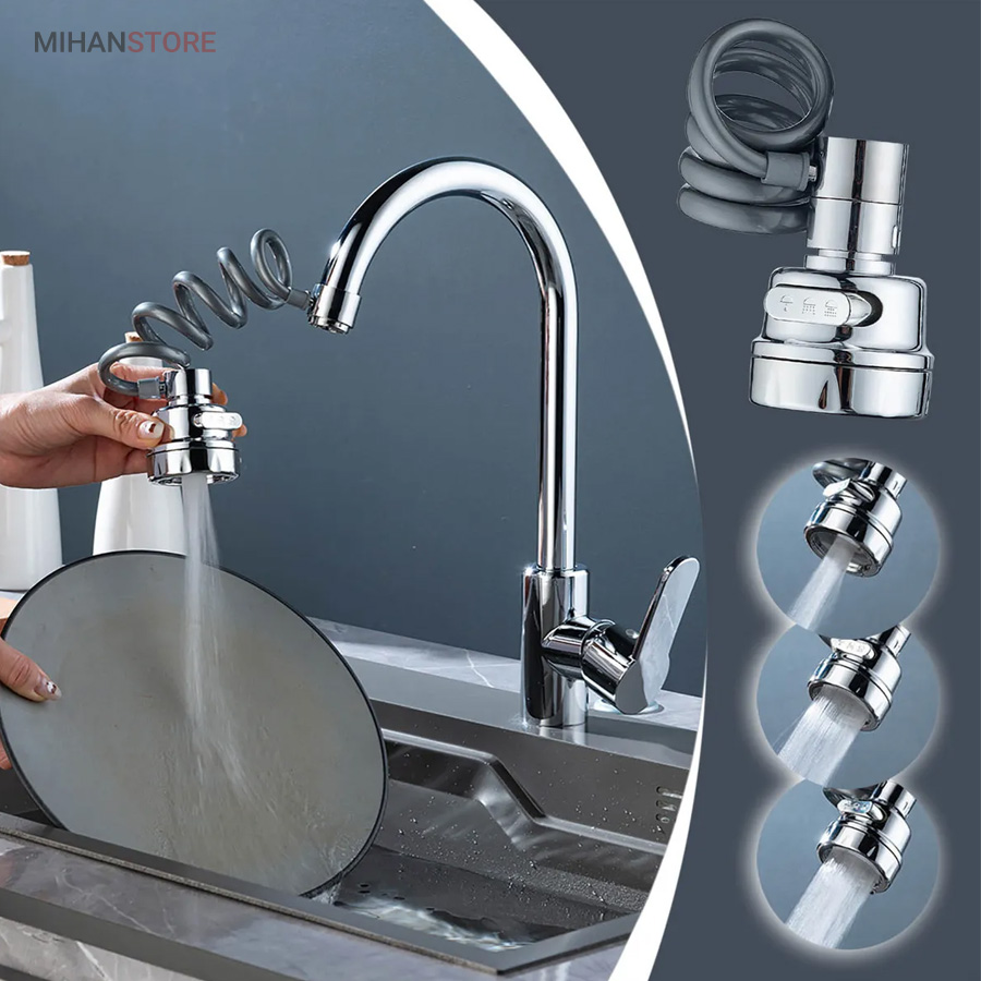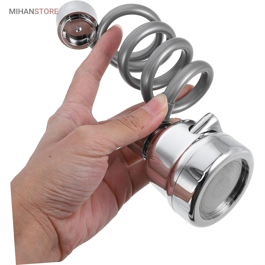 با قابلیت چرخش وسیع 360 درجه به وسیله شلنگ فنری و مجهز به 3 حالت پخش آب، قادر است بطور کامل در تمام جهات بچرخد، تا به هر نقطه‌ای از سینک یا روشویی دسترسی پیدا کند و امکان شستشوی راحت را بدهد. این سر شیر آب، با استفاده از ترکیبی از مواد باکیفیت و پلاستیک ABS، عمر طولانی و دوام بی‌نظیری دارد. نکته: سایز قطر این سری شیر آب برای تمامی شیرهای روشویی و آشپزخانه رایج بازار ایران مناسب می‌باشد. با باز کردن صفحه استیل سری شیر امکان تمیزکردن آن میسر می شود.