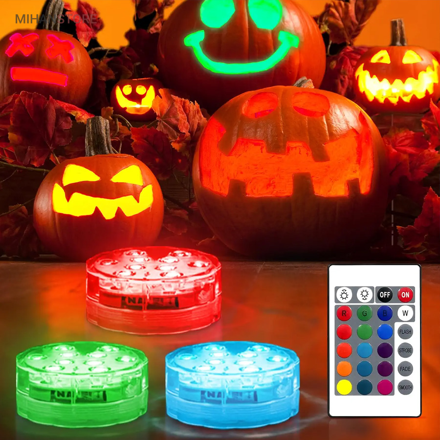 چراغ LED ریموت دار ضد آب دارای LED RGB قابلیت تولید انواع رنگها را دارد. ضمنا با توجه به داشتن ریموت کنترل امکان کنترل از راه دور را فراهم میکند. این پک LED می تواند رنگها و نورها را بصورت مستقل و یا ترکیبی و با حالتهای متفاوت در سرعت چشمک زدن و تغییر رنگها از طیفی به طیف دیگر برای ایجاد جذابیت تولید نماید. با استفاده از 3 عدد باتری نیم قلمی امکان کار تا 72 ساعت بصورت مداوم برای این لامپ وجود دارد.