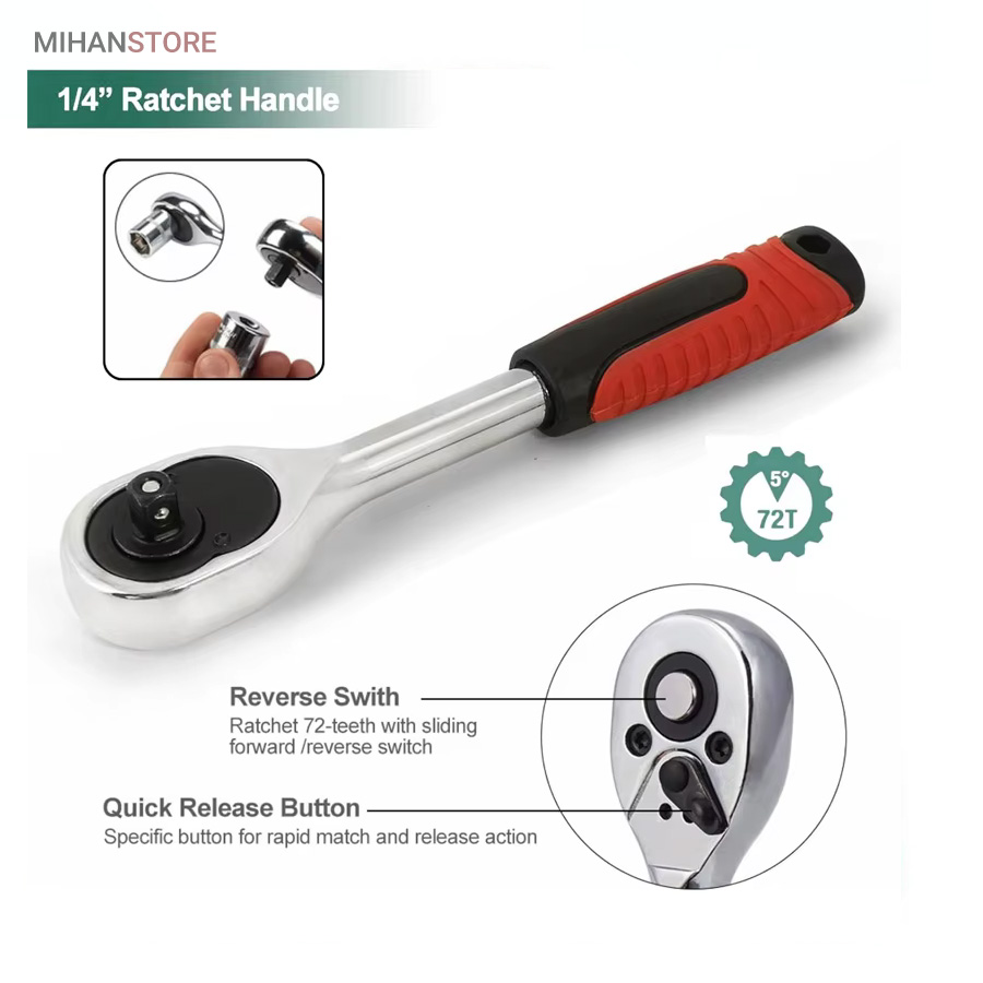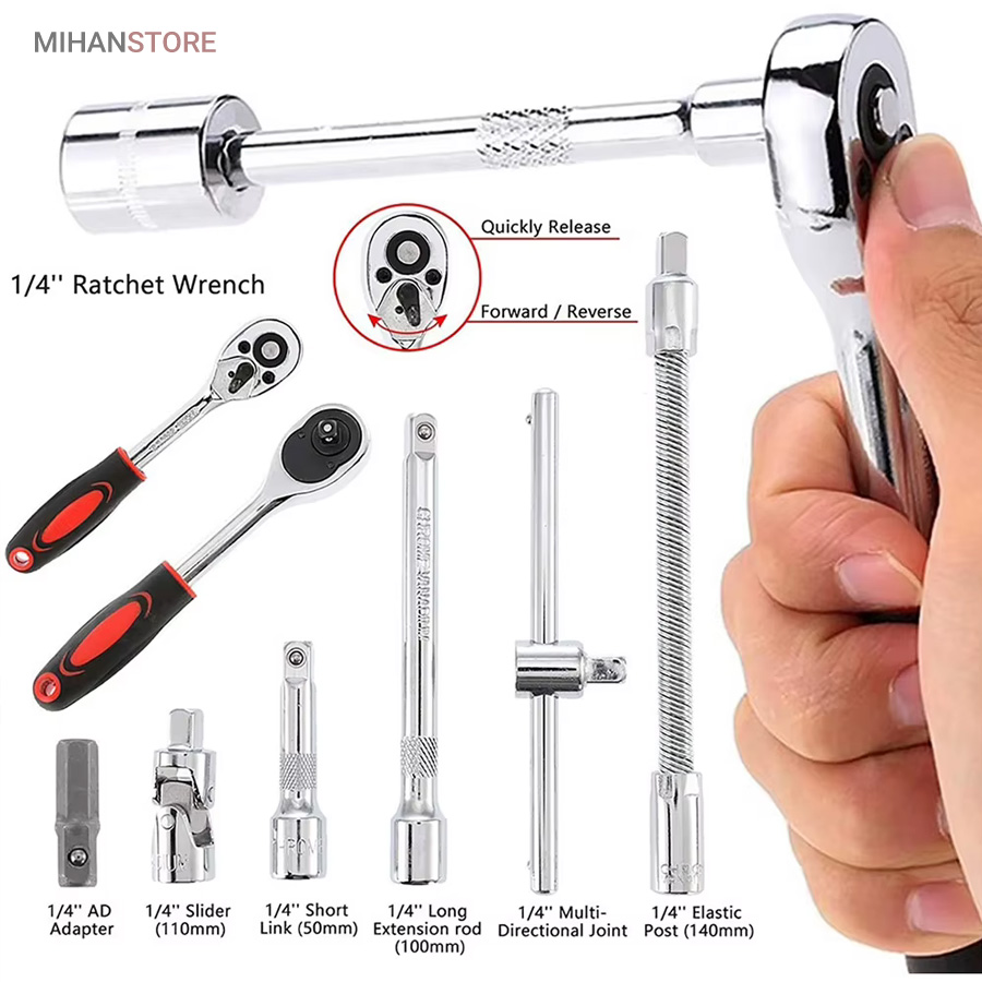 - 1 عدد آچار جغجغه‌ای به طول 19 سانتی‌‎متر با درایو 1/4 اینچ