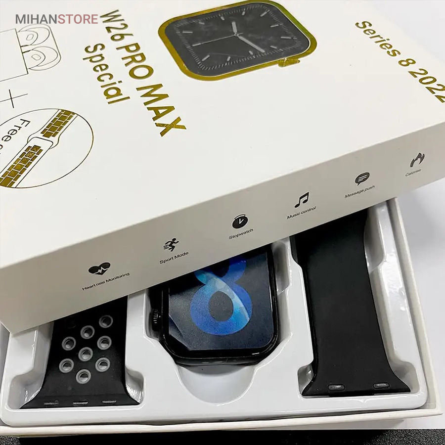 ساعت هوشمند W26-ProMax Special، محصولی است که با ترکیب ویژگی‌های پیشرفته و طراحی جذاب، می‌تواند تجربه‌ای متفاوت را برای شما رقم بزند. این ساعت هوشمند، نه تنها قابلیت‌های متنوعی را در اختیار شما قرار می‌دهد، بلکه با ظاهری زیبا و شیک، به عنوان یک اکسسوری مد و لباس نیز می‌تواند مورد استفاده قرار گیرد. همچنین، هدفون بلوتوثی همراه این ساعت هوشمند، تجربه صوتی بی‌نظیری را به شما ارائه می‌دهد. با قابلیت‌های پیشرفته و تکنولوژی روز، می‌توانید از موسیقی، ویدئو و سایر محتواهای صوتی لذت ببرید.